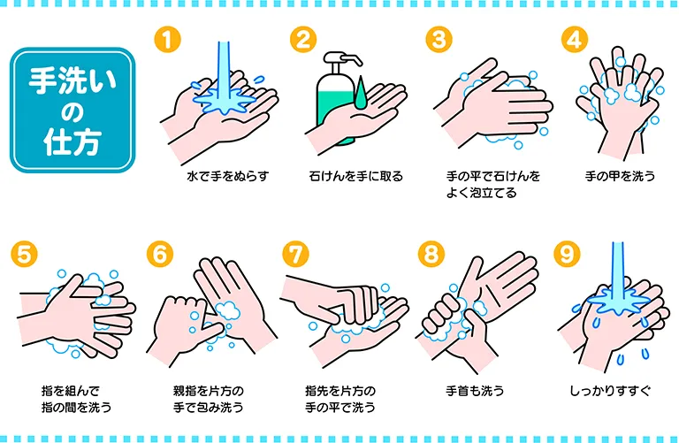 ・トイレを使用した後 ・帰宅時 ・調理の前後 ・食事をする前