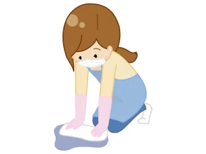 感染者のふん便や嘔吐物に接触しないように注意が必要です。ふん便や嘔吐物で汚れた衣類などを片付ける際には、使い捨ての手袋、マスク、エプロン、ペーパータオルなどを使用しましょう。ふき取った手袋などは、ビニール袋に入れ、消毒・密閉して廃棄してください。また、処理に使用した用具類などの消毒には、次亜塩素酸ナトリウム(家庭用塩素系漂白剤など)を活用しましょう。作業後は、必ず手洗い、うがいを行ってください。