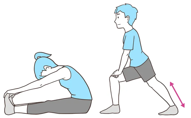 こむら返りが起きてしまったら、まずはつった部分の筋肉を伸ばしましょう。ふくらはぎの場合は、足を伸ばして座り、足の指を持って体の方へと引き寄せたり、壁に足の裏をつけて前屈したりして伸ばします。ただし、無理に伸ばすと筋肉が損傷し、肉離れを起こすことがありますので、ゆっくり伸ばすようにしてください。