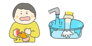 やけどをしたら、すぐに流水で患部を冷やします。10分以上は冷やし、熱を取り除きましょう。服の上から熱い汁物などをこぼしてしまった場合は、無理に脱がさず服の上から流水をかけて冷やします。