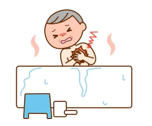 ヒートショックは、急激な温度変化によって血圧が急上昇・急下降し、心臓や血管に負担がかかり起こります。特に冬場はお風呂に要注意。脱衣所と浴室の温度差が大きく、高齢者や持病がある人がなりやすいといわれています。意識のない人を発見した場合は、すぐに119番に電話しましょう。対策としては、入浴前に脱衣所や浴室を暖めて急激な温度変化を避けるように。また、入浴中は水分が体から失われるので、入浴前にコップ1杯程度の水を飲んでおくのがおすすめです。