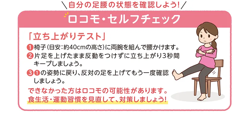 「食事と運動でロコモ対策」を参考にして、ぜひ対策していきましょう。